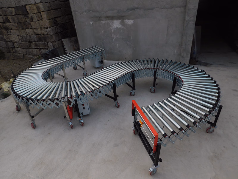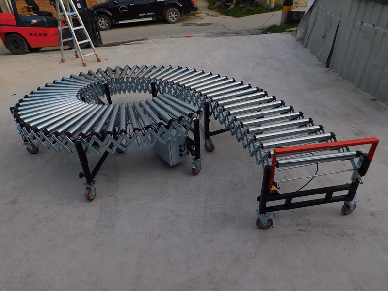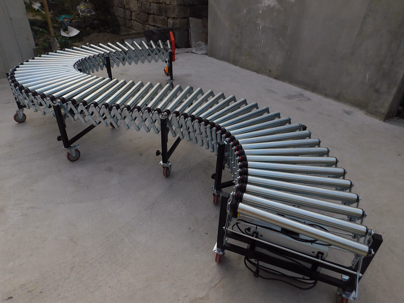 科至途伸缩传送多契带转弯机动力滚筒线快递分拣流水线不锈钢小型输送机 镀锌滚筒60cm宽 无动力