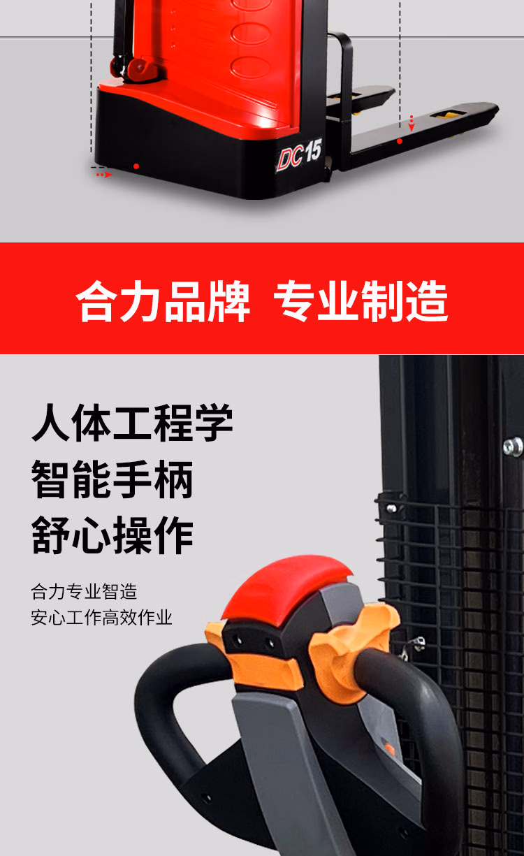 合力电动堆高车站驾式物流仓储装卸液压升降搬运车步行托盘堆垛车 合力步行式1.5吨2米CDD15J-20