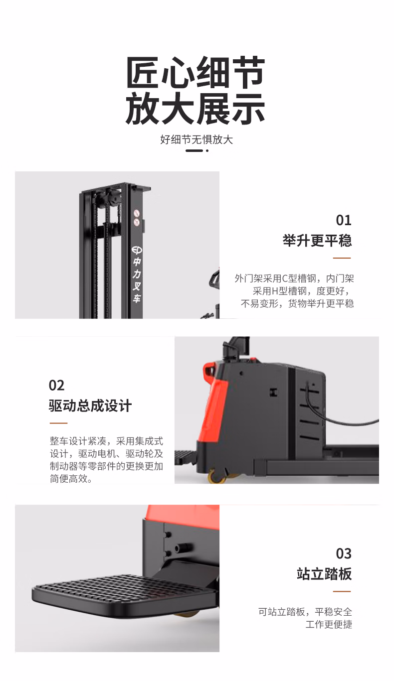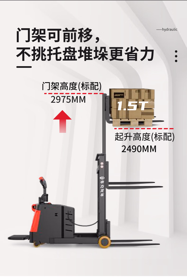 中力中力全电动前移式堆垛机叉车电动叉车堆高车1.5吨托盘液压叉车 EQA151堆高车1.5吨